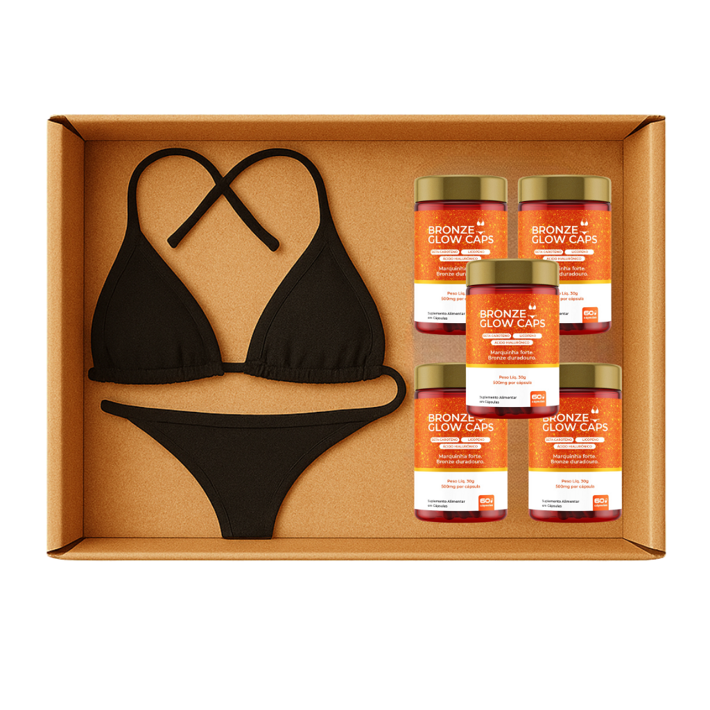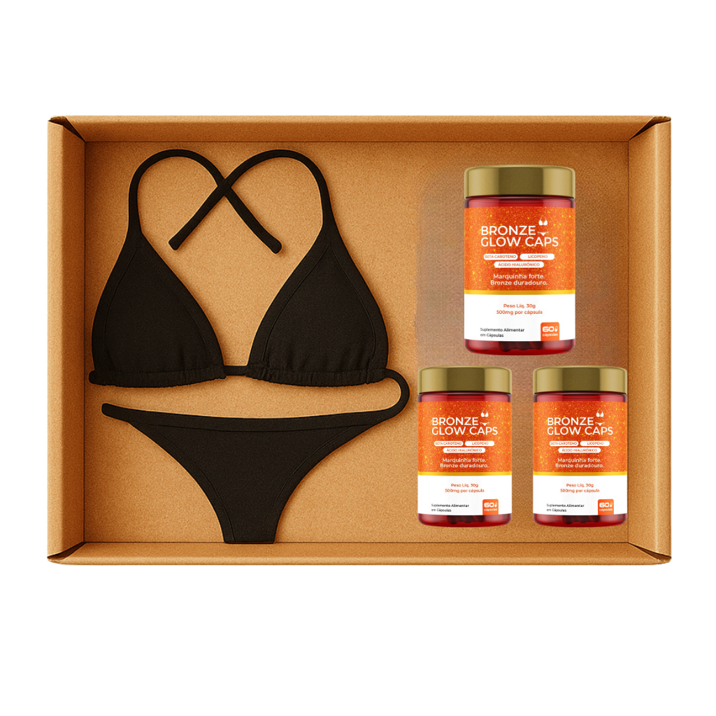 O único kit que entrega o suplemento + o biquíni certo pra marcar sua marquinha no nível das famosas.